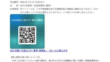 旭川市立大学地域連携研究センター主催 2025年度「見学会」開催のご案内