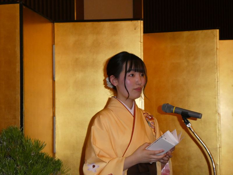 藤原潤一学長は告辞の中で、新型コロナウィルスの流行やウクライナ問題に触れ、社会と世界のかたちが大きく揺れた期間だったと述べ、さらに、大きく変化する社会への船出に「航海の無事を祈ります」とエールを贈った。