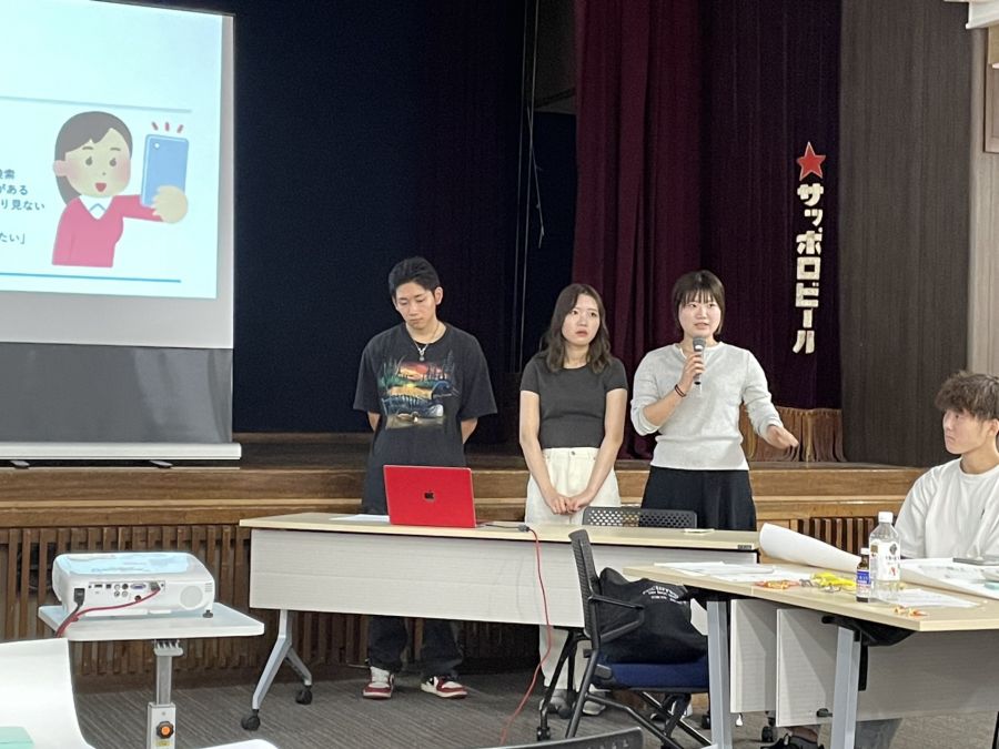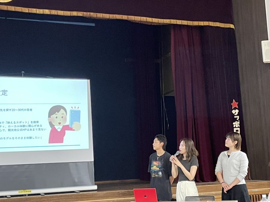 9月10日(水)斜里町産業会館で開催された、北見工業大学主催「アントレワークキャンプ2025」に杉村ゼミ学生(2年)4名が参加した。前日までの現地での情報収集等をもとに検討した新たな観光ビジネスアイデア構想について発表を行った。発表内容は、いずれもデザイン思考を活用した学生らしい発想に基づくもので、北見工業大学との混合のチーム毎に行われた。斜里町町長以下斜里町職員の皆さんにも参加いただいた。活発な質疑応答が行われ、より一層の検討も求められた。大学の講義では学べない、たくさんの発見・体験があった。今回の発表内容を今後ブラッシュアップしていく予定である。