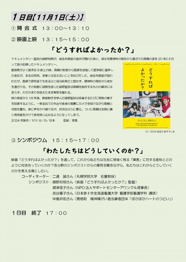 旭川市内で開催される福祉イベント「きょうされん北海道支部2025全道大会」にて、話題のドキュメンタリー映画『どうすればよかったか』の上映と、監督や専門家によるシンポジウムが行われます。