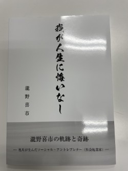 10月28日302教室にて、当ゼミ3年生が参加し、ゼミ担当教員が監修した書籍、瀧野喜市『我が人生に悔いなし 瀧野喜市の軌跡と奇跡ー旭川が生んだソーシャル・アントレプレナー(社会起業家)ー』北海道健誠社2025年発行をもとに、「ソーシャル・アントレプレナー研究会」を開催した。留学中のゼミ学生もオンラインで参加し、意見交換を行った。参加した学生から、「瀧野喜市さんの納豆売りの話や従業員への接し方から、事業を行ううえでも人の心や優しさがとても重要だと感じられた。」「会社を見学した時に、なぜクリーニング・リネンサプライ業なのにバイオマスや太陽光エネルギーを自社でつくり、保育園を経営する必要があるのか不思議に思っていたが、社会貢献を進めるうえでの必然性があるのだということが理解できた。」「中学校の先生から言われた励ましの言葉が、一貫して困難を乗り越える力になっていたことに感動した。」「事業開始以来一切利益は求めず、社会貢献だけを追求する態度が印象的だった。」などの意見が交わされた。