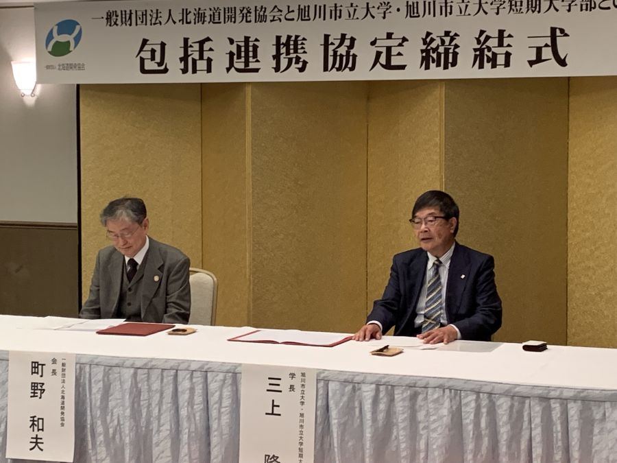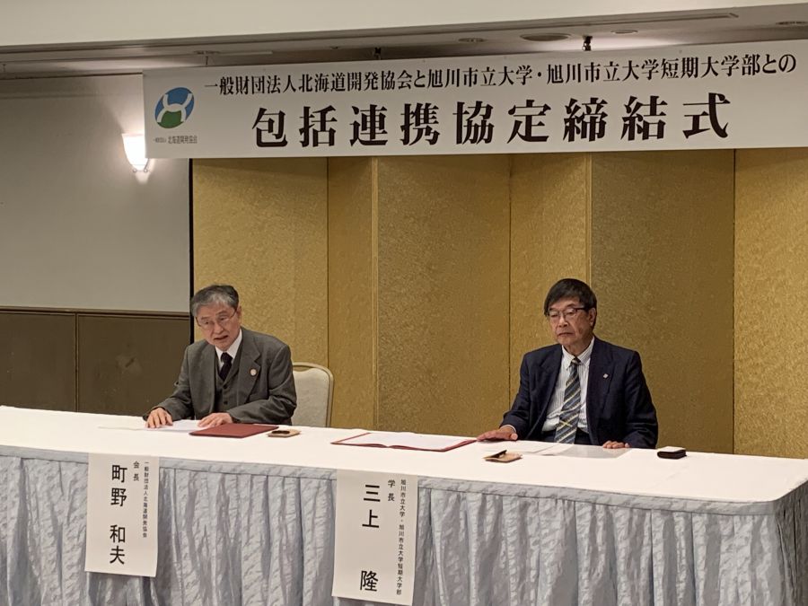 令和7年10月14日(火)、札幌ガーデンパレスホテルにて「一般財団法人北海道開発協会と旭川市立大学・旭川市立大学短期大学部との包括連携協定書」を締結いたしました。