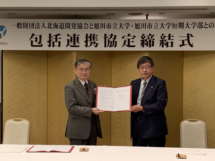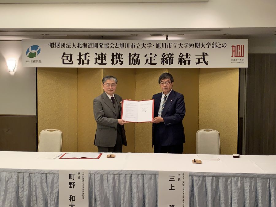 令和7年10月14日(火)、札幌ガーデンパレスホテルにて「一般財団法人北海道開発協会と旭川市立大学・旭川市立大学短期大学部との包括連携協定書」を締結いたしました。