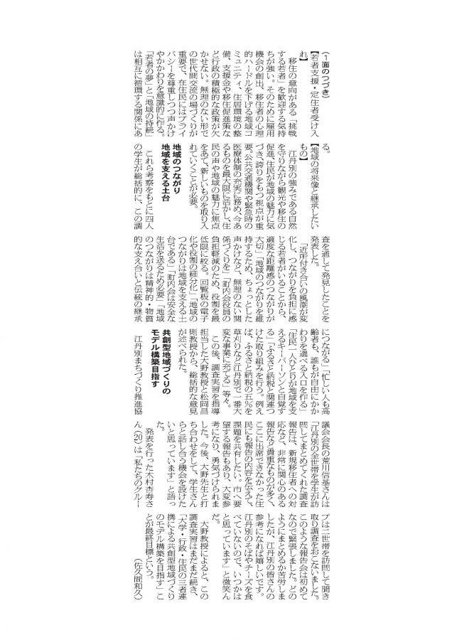 江丹別の声を、次の一歩へ――「生活実態調査報告会」の成果が新聞掲載