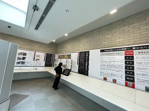療養所の始まり、強制隔離、らい予防法の廃止と裁判などが紹介されていました。症状の進行とともに治療へのあきらめも深まる一方で、「どうにかして治りたい」という本人の強い願いが、迷信や信仰に傾いていったという展示を見た時、私は2年次におこなった文献抄読『宗教は孤独から人を救うか』(2025年1月29日の五所ゼミナールの記事に掲載されています是非ご覧ください!)を思い出し、信仰の意味を改めて考える機会となりました。