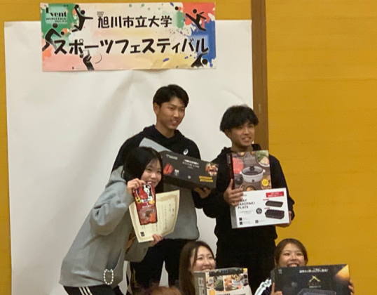 2025年10月25日(土)、旭川市立大学にて第3回スポーツフェスティバルが開催されました。 今年は22チーム、延べ100名以上の学生が参加し、学年や学部の垣根を越えて大いに盛り上がりました。私たちCHO(しーえいちおー)チームも5名で出場し、熱い一日を過ごしました。