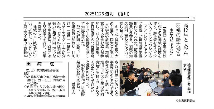 北海道新聞 留萌・宗谷版および旭川版で、本キャンプについて掲載されました。